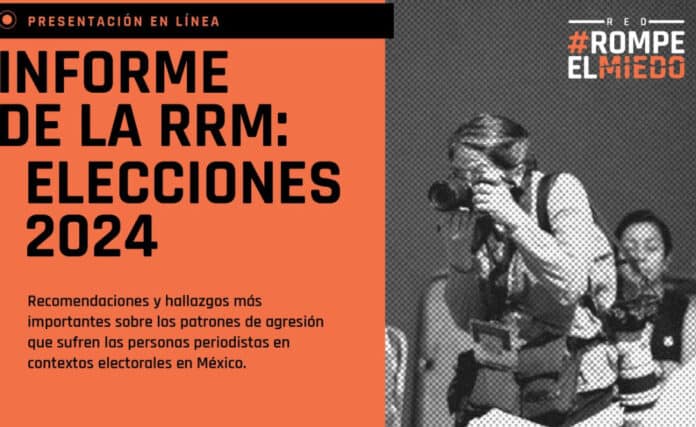 Ciudad de México, a 27 de agosto de 2024 – La Red Rompe el Miedo (RRM), presentó su informe sobre las agresiones documentadas contra periodistas durante el proceso electoral de 2024. La RRM, activada del 1 de marzo al 1 de julio del presente año, operó con 8 centros de monitoreo estatales en Chiapas, Chihuahua, Coahuila, Guanajuato, Jalisco, Oaxaca, Sinaloa y Quintana Roo, y con el apoyo de organizaciones aliadas como el Border Center for Journalists and Bloggers, Comunicación e Información de la Mujer A.C. (CIMAC), Propuesta Cívica, Toma tu Remo y PERTENECES.