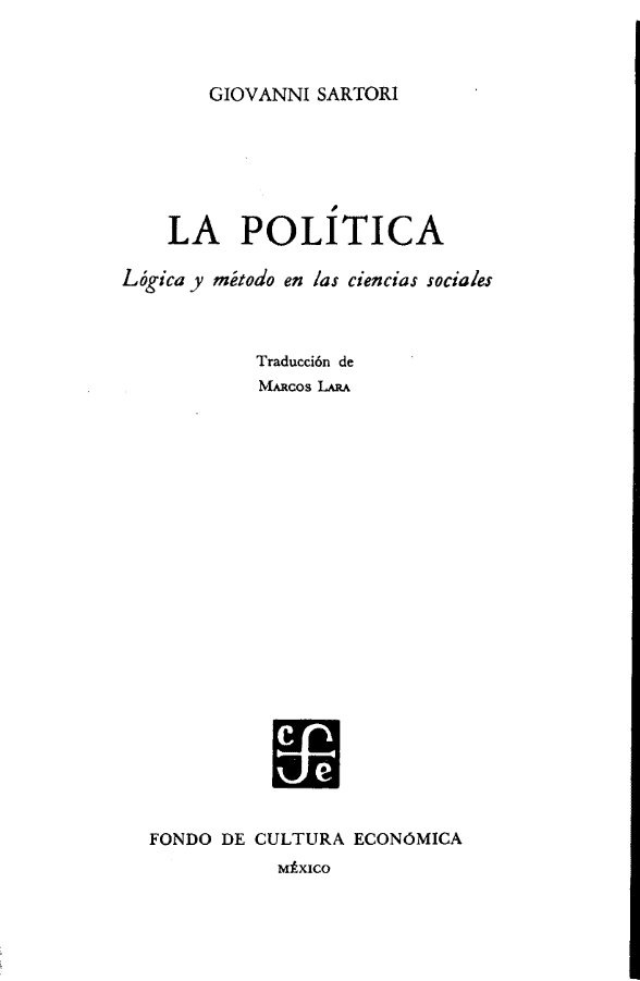 “La política: lógica y método en las ciencias sociales” es una obra del politólogo italiano Giovanni Sartori. En este libro, Sartori examina el estatus científico de las ciencias sociales, su metodología y la capacidad de formular hipótesis demostrables y aplicables. Además, explora la relación entre la ciencia y la política a lo largo de la historia, desde la antigüedad hasta la sociedad posindustrial, destacando la importancia del análisis comparado en la ciencia política contemporánea.